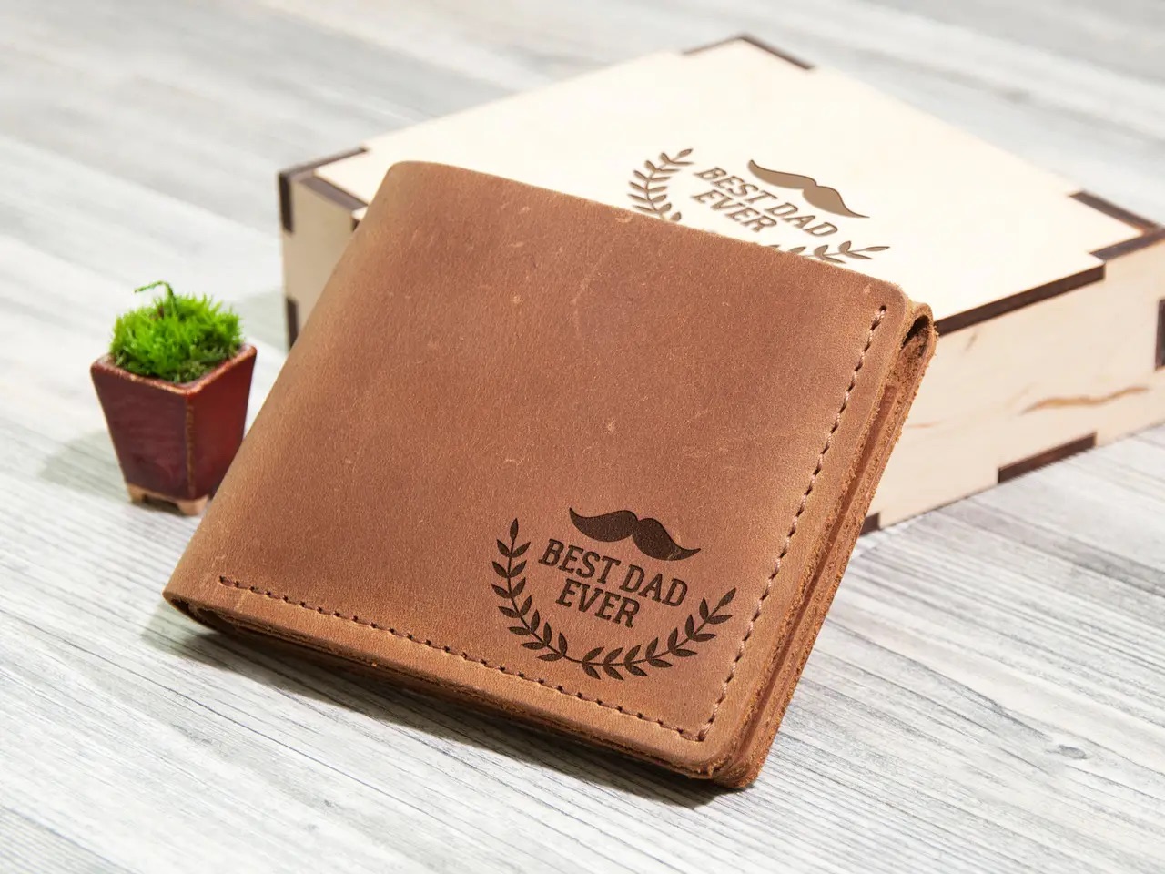 Статусный аксессуар из натуральной кожи — беспроигрышный вариант для 50-летнего мужчины. Вы можете сделать его уникальным, добавив именную гравировку с инициалами отца или коротким пожеланием. Каждый раз доставая кошелек, папа будет вспоминать о вашем внимании.