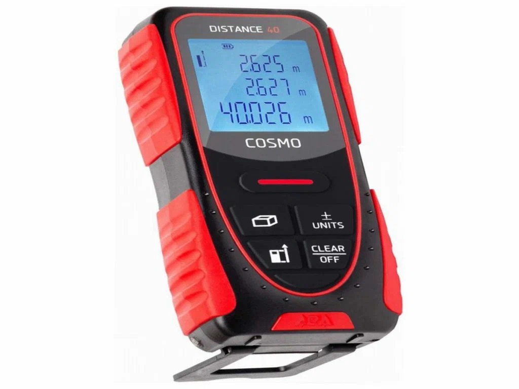 - Память и функции расчета: прибор сам вычислит площадь пола или объем комнаты.
