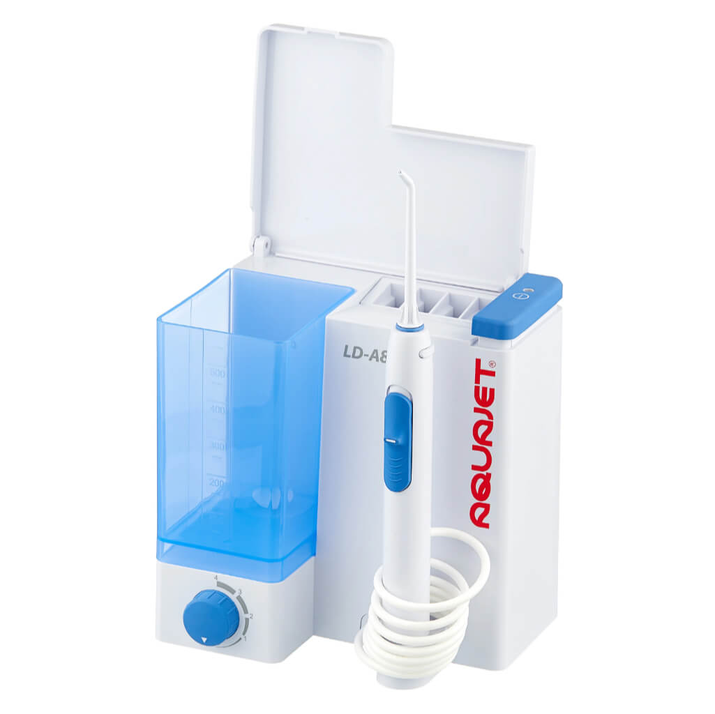Ирригатор данной модели имеет не только съемные насадки, но и динамичиое сопло с градусом поворота 360 градусов, что облегчает уход за зубами, находящимися в глубине рта. Прибор запросто поможет бороться с зубным налетом, зубным камнем и частичками еды без негативного воздействия на десны. В наборе предусмотрено пять насадок, а сам ирригатор поддерживает три режима: низкий, высокий и импульсный. Устройство эргономично, не тяжело, поэтому его можно брать в поездки, ощущая свежесть во рту всегда и везде.