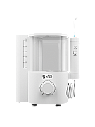 Ирригатор для зубов и для полости рта, с объемным резервуаром емкостью 500 мл. Устройство станет настоящей находкой для пользователей с брекетами, имплантами и протезами, а также с чувствительными деснами. Комплектующими являются четыре стандартных насадки, а также специальная, для ухода за деснами. К слову, пятая насадка подойдет для использования детьми. Приучайте своих отпрысков к гигиенической заботе к полости рта с самых ранних лет. Устройство является стационарным, то есть, взять его с собой в дорогу не получится. Зато ирригатор обладает приятным дизайном, и его можно не только поставить на полку, но закрепить на стене туалетной комнаты.