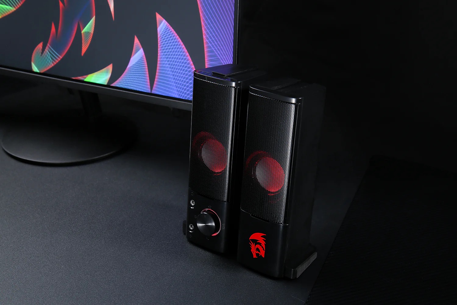 Redragon Orpheus GS550 – ещё одна бюджетная акустика для компьютера, популярная среди геймеров-новичков. Это пара узких 2.0 колонок (по 3 Вт каждая), которые можно ставить по бокам, а можно соединить между собой горизонтально, превратив в компактный саундбар. Фишка модели – красная подсветка и агрессивный дизайн, что добавляет атмосферы на игровом столе. Звук Orpheus подходит для озвучки роликов, чат-коммуникации и нетребовательной музыки. Верхние частоты колонкам даются хорошо, речь звучит чётко. Однако низкие частоты ощутимо урезаны – сабвуфера-то нет, а диапазон начинается примерно с 300 Гц. Возможно, вы видели эту модель под названием “Redragon GS550” – это она и есть.