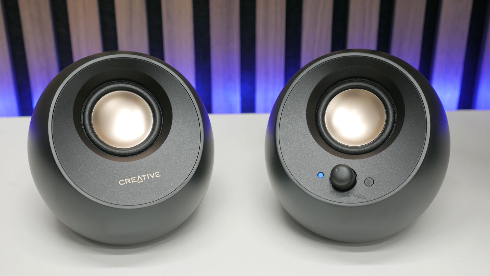 Creative Pebble V3 – продолжение знаменитой линейки мини-колонок Pebble. Две аккуратные «шарики-спикеры» диаметром ~12 см каждый, которые направляют звук под углом прямо на слушателя. Несмотря на скромный вид, внутри у них 2.25-дюймовые широкополосные динамики суммарной мощностью 8 Вт RMS (16 Вт пик). В отличие от предыдущих версий, Pebble V3 оснащены Bluetooth 5.0 – их можно подключать беспроводно к телефону или ноутбуку. Также предусмотрен USB-C для питания (и одновременной передачи звука по USB-аудио) и классический AUX 3,5 мм. Эти акустические колонки для компьютера хорошего качества известны своей чистотой звучания: высокие и средние частоты очень четкие, голоса передаются натурально. Конечно, глубокого баса нет (низких частот примерно с 100 Гц), но для близкого расстояния, например, когда вы сидите перед монитором, баса достаточно слышно, а чрезмерного гула нет.