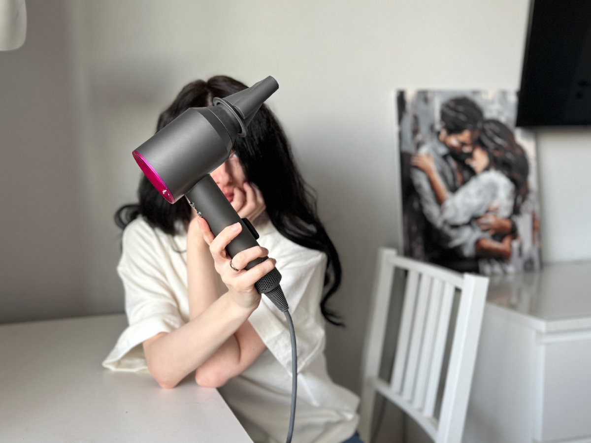 Dyson Supersonic HD07 – легендарный кольцевой фен (1600 Вт) с мотором в ручке. У него 3 скорости и функция холодного обдува, встроенная ионизация борется со статиками. Рекомендуется профессионалами за «мягкое» обращение с волосами (Dyson не перегревается даже на 100 °C). В комплекте 5 магнитных насадок для любых задач. Цена очень высокая (от ~37 000 ₽), что делает его дорогим удовольствием.