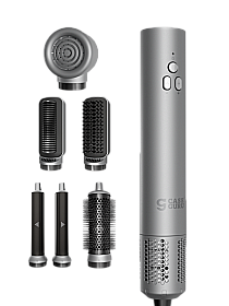 Данное устройство сочетает в себе полноценный фен и стайлер для создания изящных локонов — и является по сути мультистайлером. Bork F732 сам подбирает температуру и скорость потока воздуха в зависимости от режима. Подойдет для сушки волос детей, шерсти животных. С этим устройством будет гораздо легче ухаживать за волосами. Благодаря функции ионизации кудри будут гладкими, блестящими и объемными. Есть и функция холодного обдува — это позволит «запечатать» кончики волос, чтобы они не секлись. На стайлере установлено 10 режимов, а в комплекте идут 3 насадки для стайлера. Простое управление, эргономичный дизайн и невероятная лёгкость делают универсальный фен-стайлер максимально удобным в использовании.