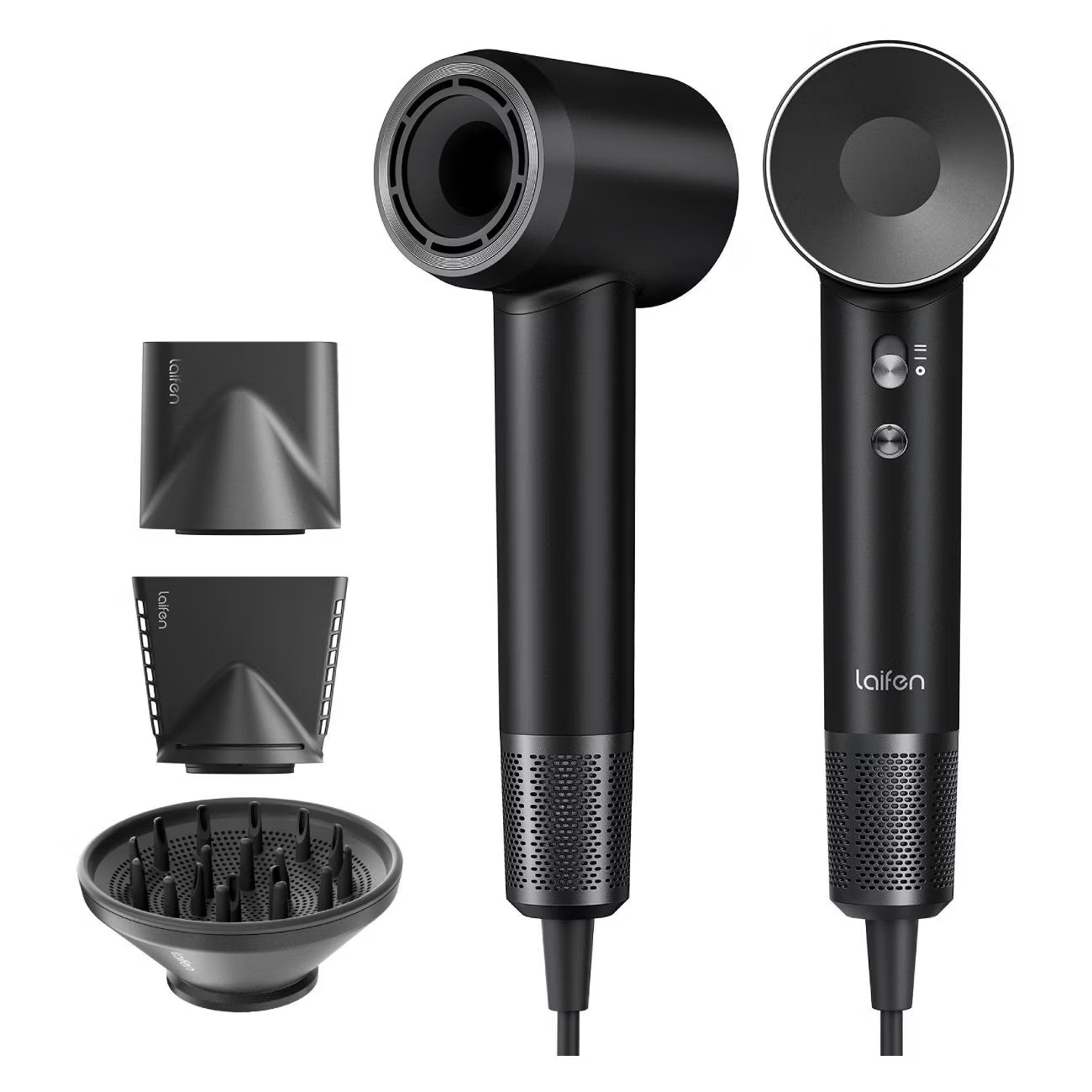 На втором месте рейтинг разместился Laifen SWIFT SPECIAL – компактный и стильный фен нового поколения. Этот гаджет появился как доступный аналог профессиональных устройств: за ~8 000 ₽ вы получаете мощный поток воздуха до 22 м/с и отличную сборку. У Laifen бесщёточный мотор, раскручивающийся до 110 000 об/мин, поэтому волосы высыхают очень быстро при относительно низкой температуре. Фен хорошо подходит для любителей путешествовать (вес около 500 г) и для домашнего использования – тихий и лёгко лежит в руке.
