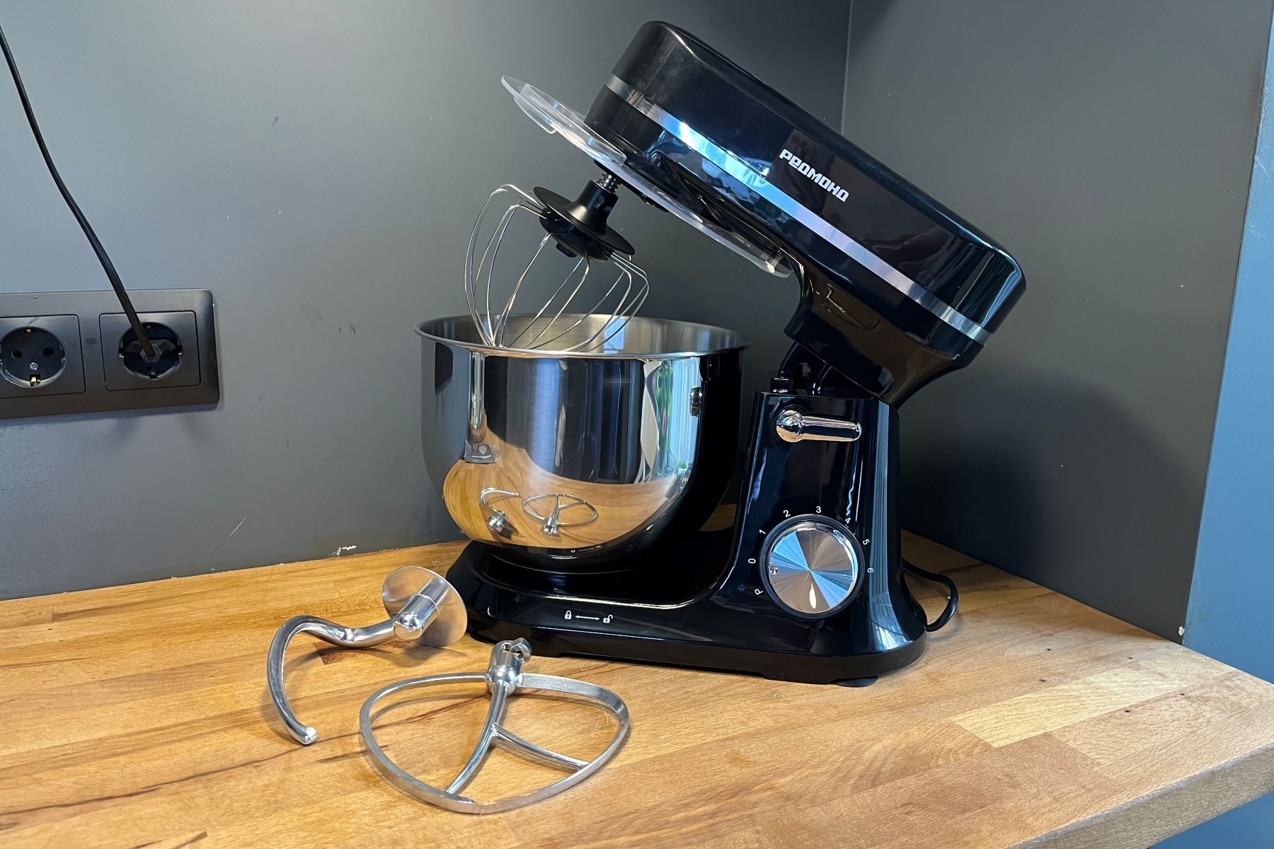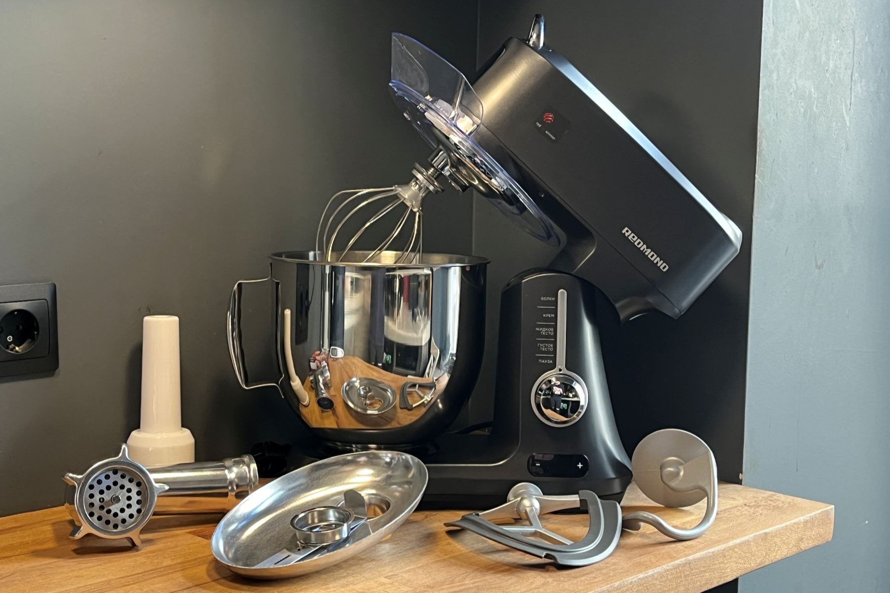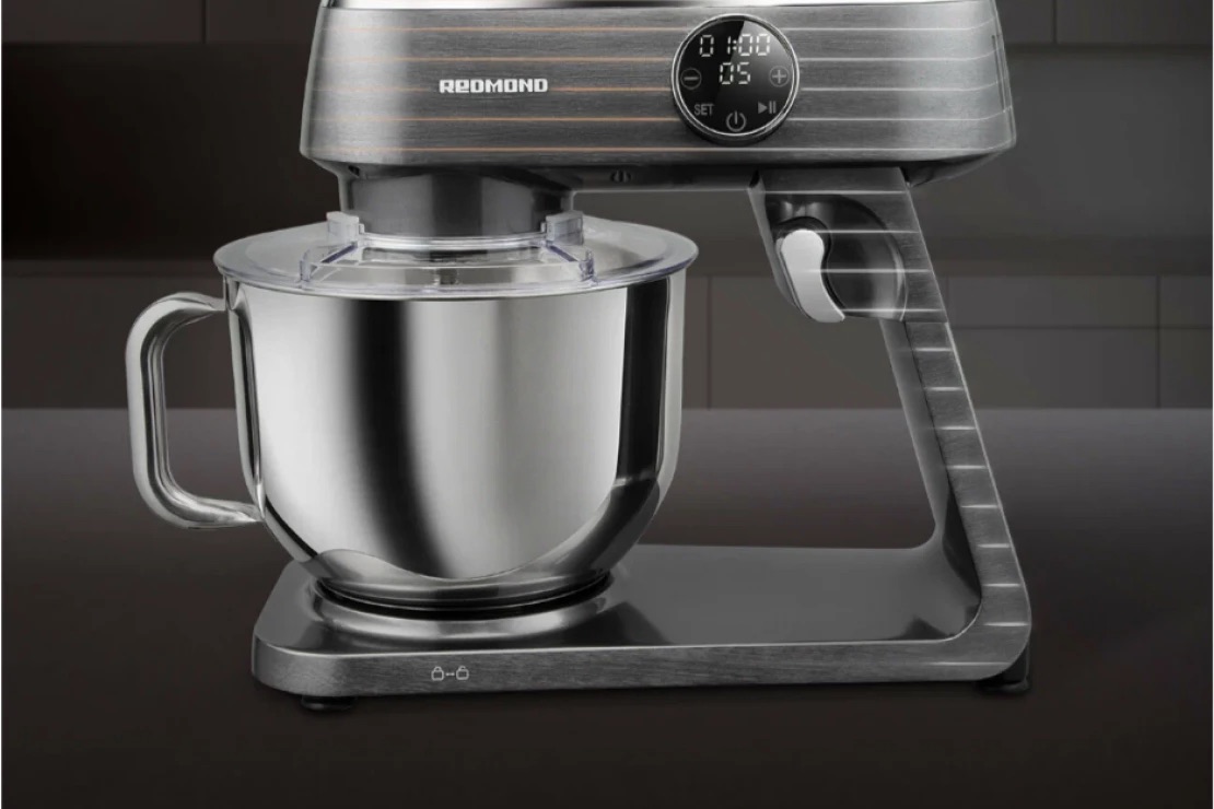 Redmond выпускает и ручные миксеры, и мощные планетарные машины. У большинства моделей стандартный набор насадок — венчик для взбивания и крюк для теста. Но есть и экзотика: например, у RFM-5382 в комплекте есть погружной блендер-насадка, который превращает его в миксер-блендер-измельчитель. Это настоящий «3 в 1» (миксер + блендер + измельчитель) – пригодится и для супа-пюре, и для домашних коктейлей. Качество у Redmond на уровне: у топовой модели FM-602 металлический корпус, мощный мотор на 2000 Вт и сенсорная панель. Многие заметили, что он похож на «дорогой автомобиль» для кухни. Но и спорный момент есть: некоторые считают, что такой монстр — не нужная трата денег, ведь для простых задач достаточно и ручного миксера.