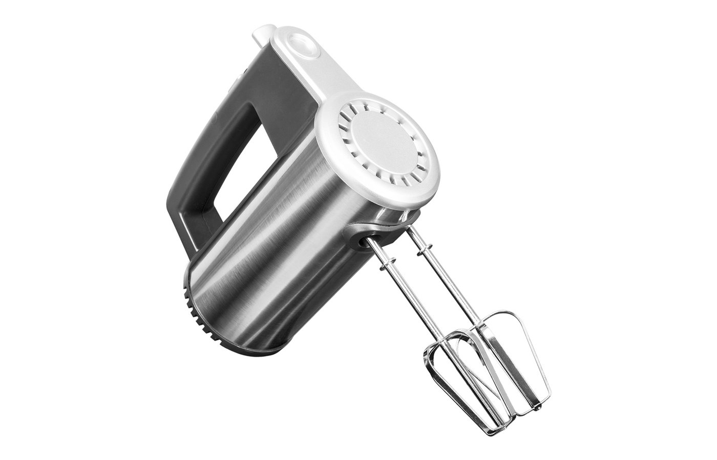 Ещ один популярный ручной миксер, уже с корпусом из нержавеющей стали и пластика. Мощность 500 Вт, 5 скоростей с турбо. Весит всего 1.1 кг, удобная легкая рукоятка. Подойдет для ежедневных задач: взбить крем, замесить жидковатое тесто, перемешать фарш. Пример: моя подруга отмечала день рождения и готовила взбитые сливки к тортам – этот миксер справился за считанные минуты.