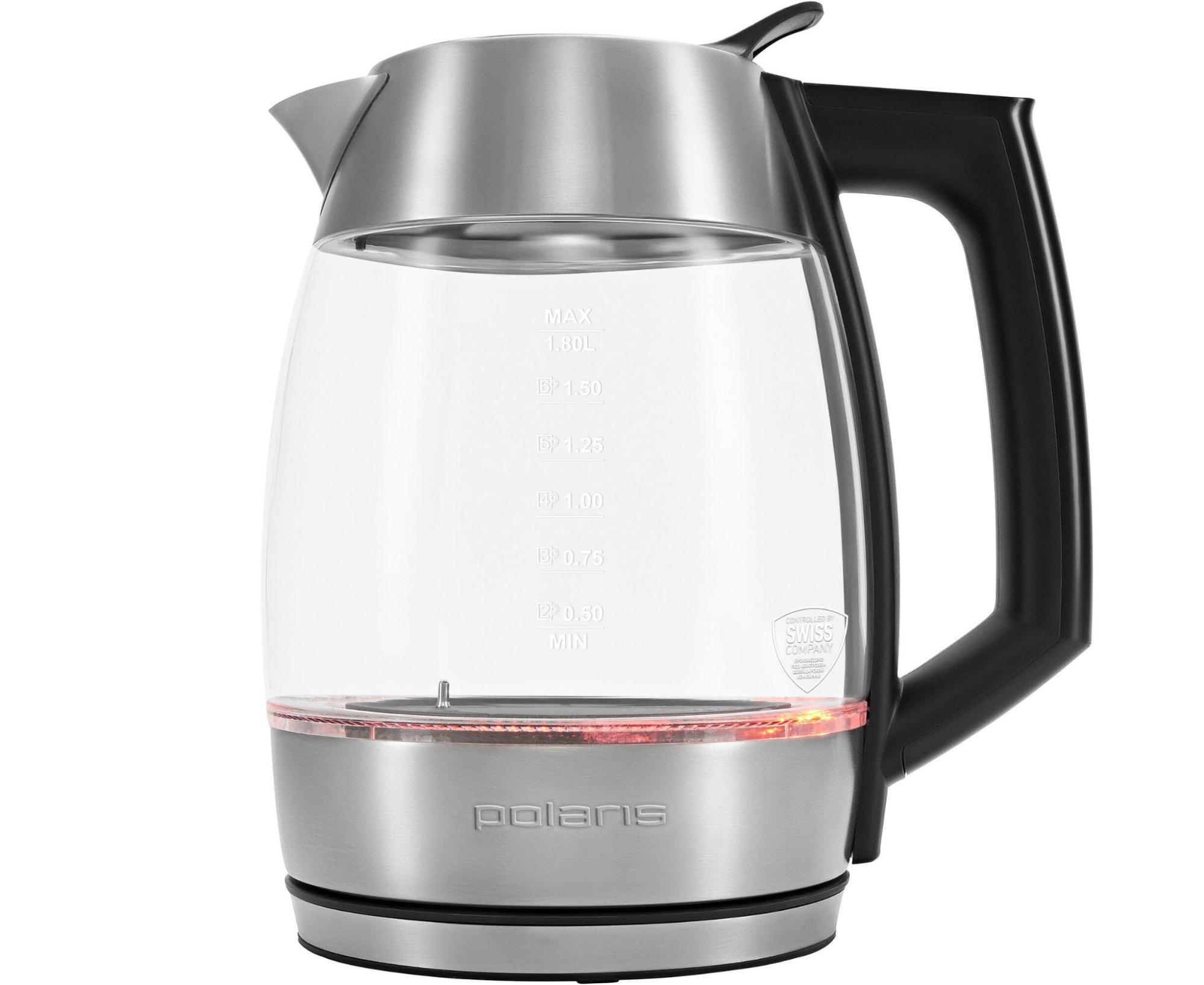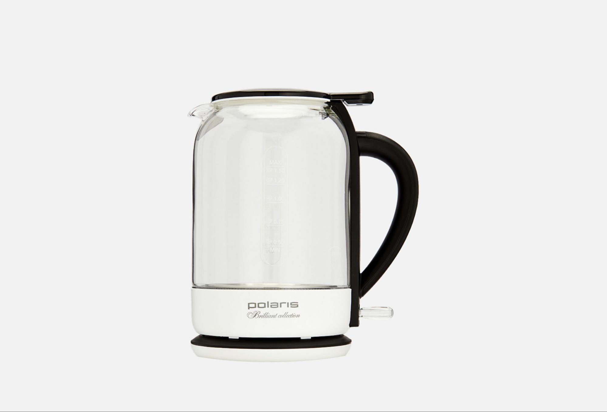 Классика Polaris Brilliant Collection: стеклянный чайник с яркой подсветкой. Корпус из термостойкого стекла, внутренний LED-свет и двойная шкала уровня воды. Мощность 1800–1950 Вт, объём 1,5 л. Управление электронное, есть автоотключение, скрытый ТЭН и однорычажный переключатель. Контроллер STRIX рассчитан на 15000 циклов кипячения (10 лет интенсивной работы).