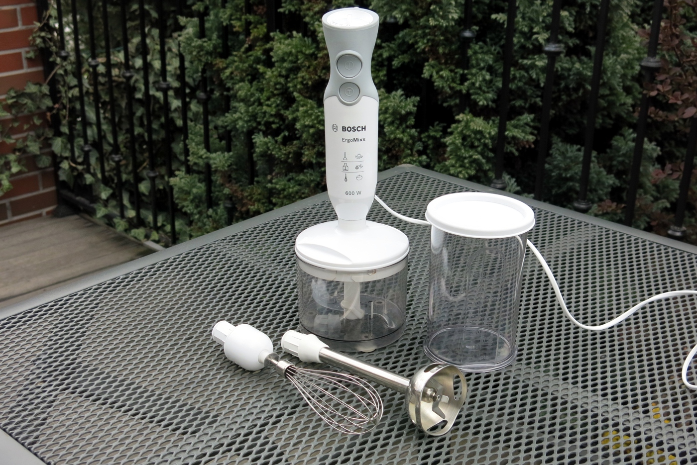 Это очень мощный профессиональный блендер Bosch серии ErgoMaster, 1200 Вт.. Здесь всё – металл, любая нагрузка по зубам. 12 бесступенчатых режимов, турбо, в комплекте измельчитель и венчик. Весит солидно, но это и неудивительно при такой начинке. Лично мне однажды с его помощью удалось за пару секунд пюрировать горсть фасоли – мой старый блендер об этом лишь мечтал.