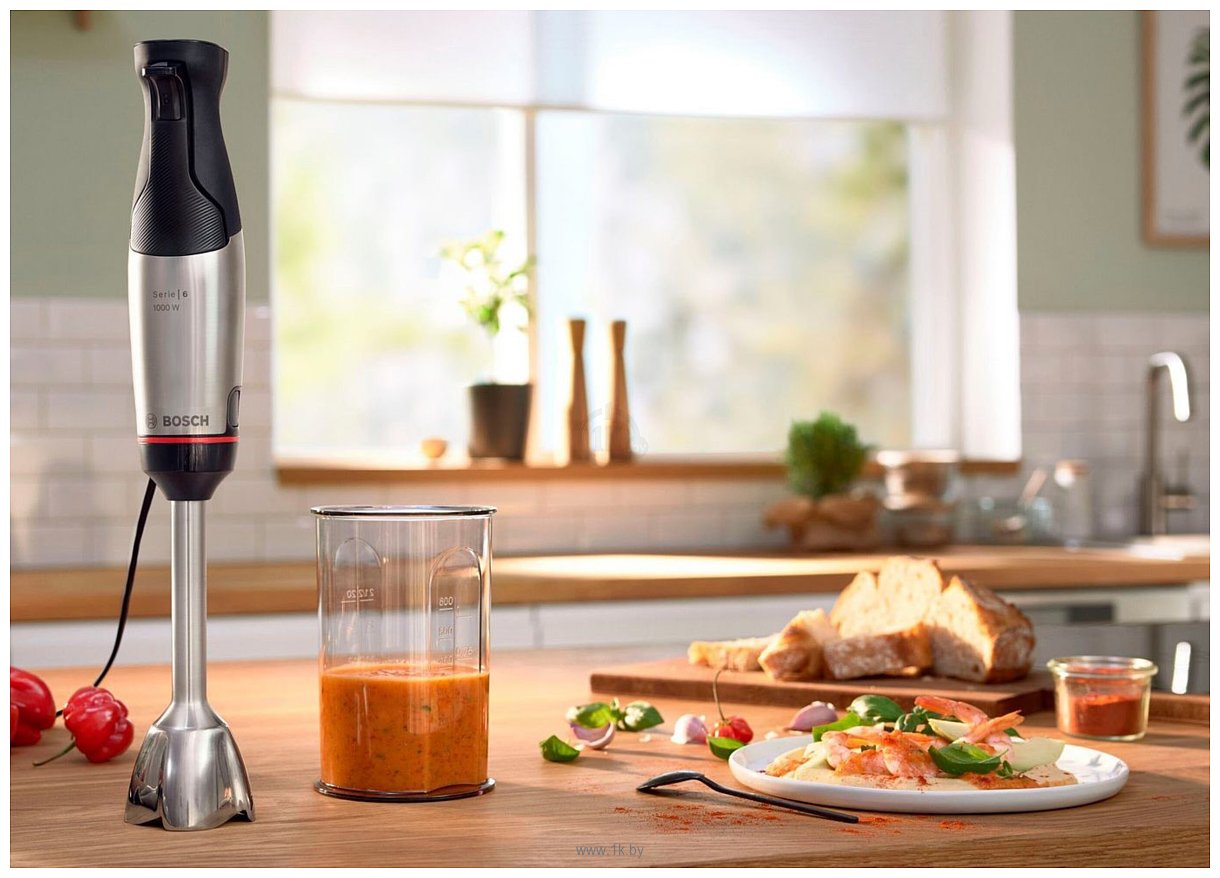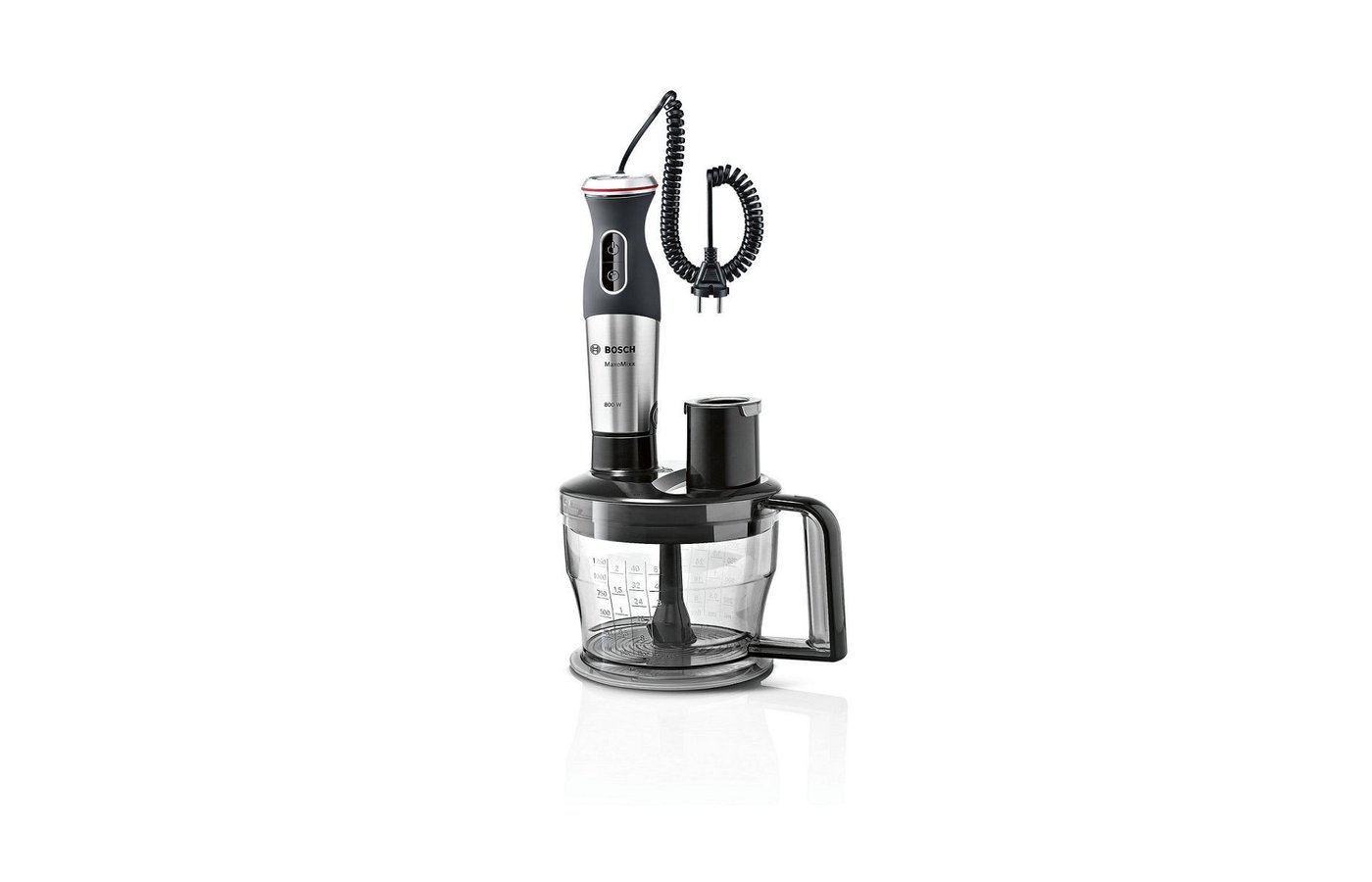 Редкий "тяжеловес" среди погружных Bosch. Это модель для тех, кто устал от компромиссов. Мощность 1200 Вт и 12 скоростей дают свободу: замесить тесто для блинов, растолочь лед, сделать ореховую пасту — легко. В руке ощущается как профессиональный инструмент: тяжёлый, уверенный, точный. Но не всем нужна такая мощь. Просто взбить утреннюю овсянку? Тут этот блендер может показаться "перебором". Хотя, между нами, лучше перебор, чем недобор.