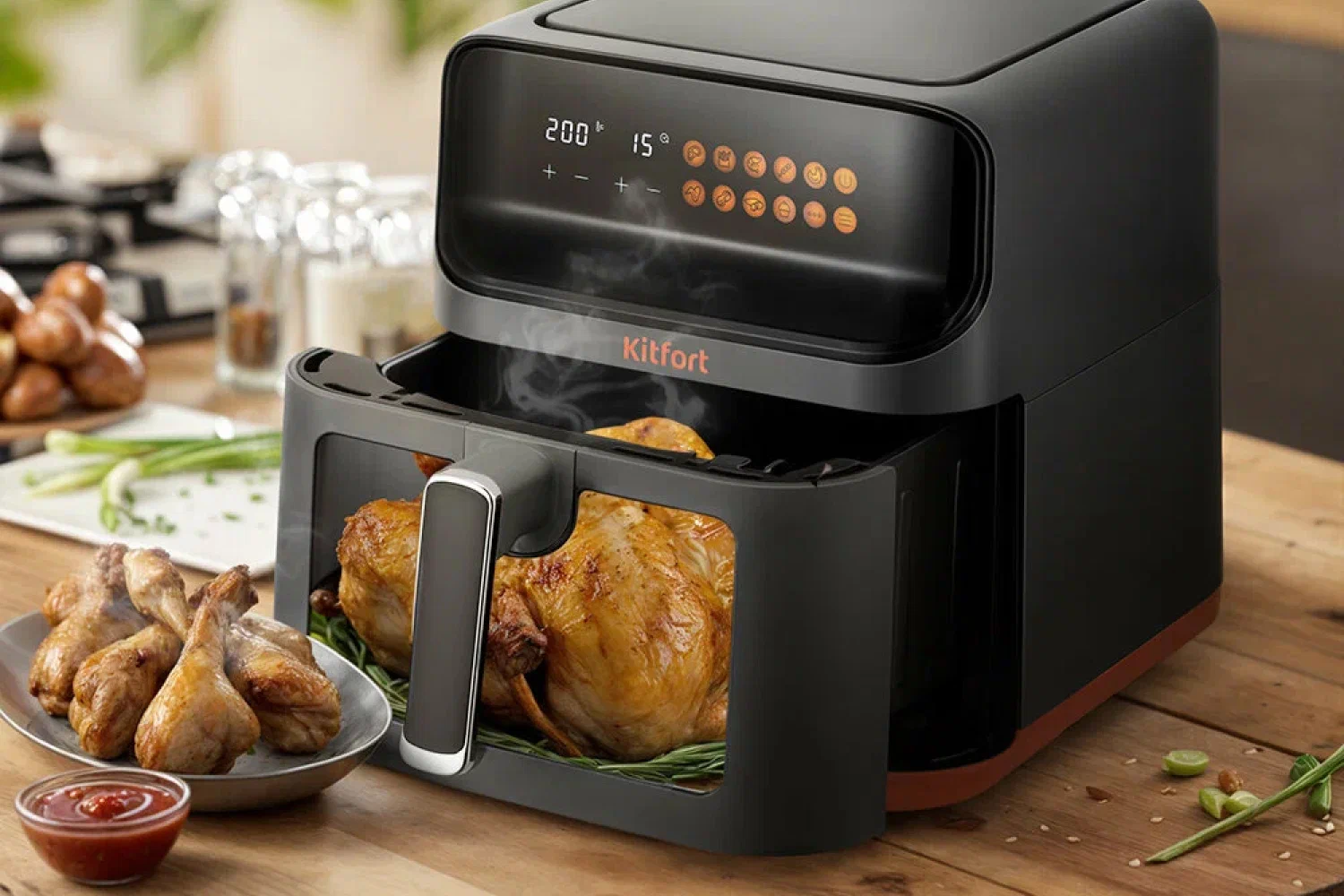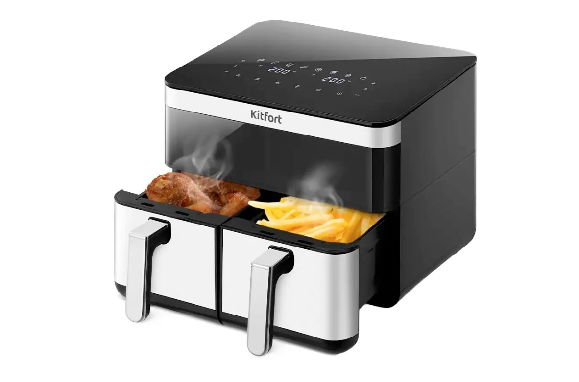 Теперь перейдём к главному – к каждой модели из нашего ТОП-10 аэрогрилей Kitfort. Для удобства мы указали примерную цену 2026 года и удобные в быту характеристики.