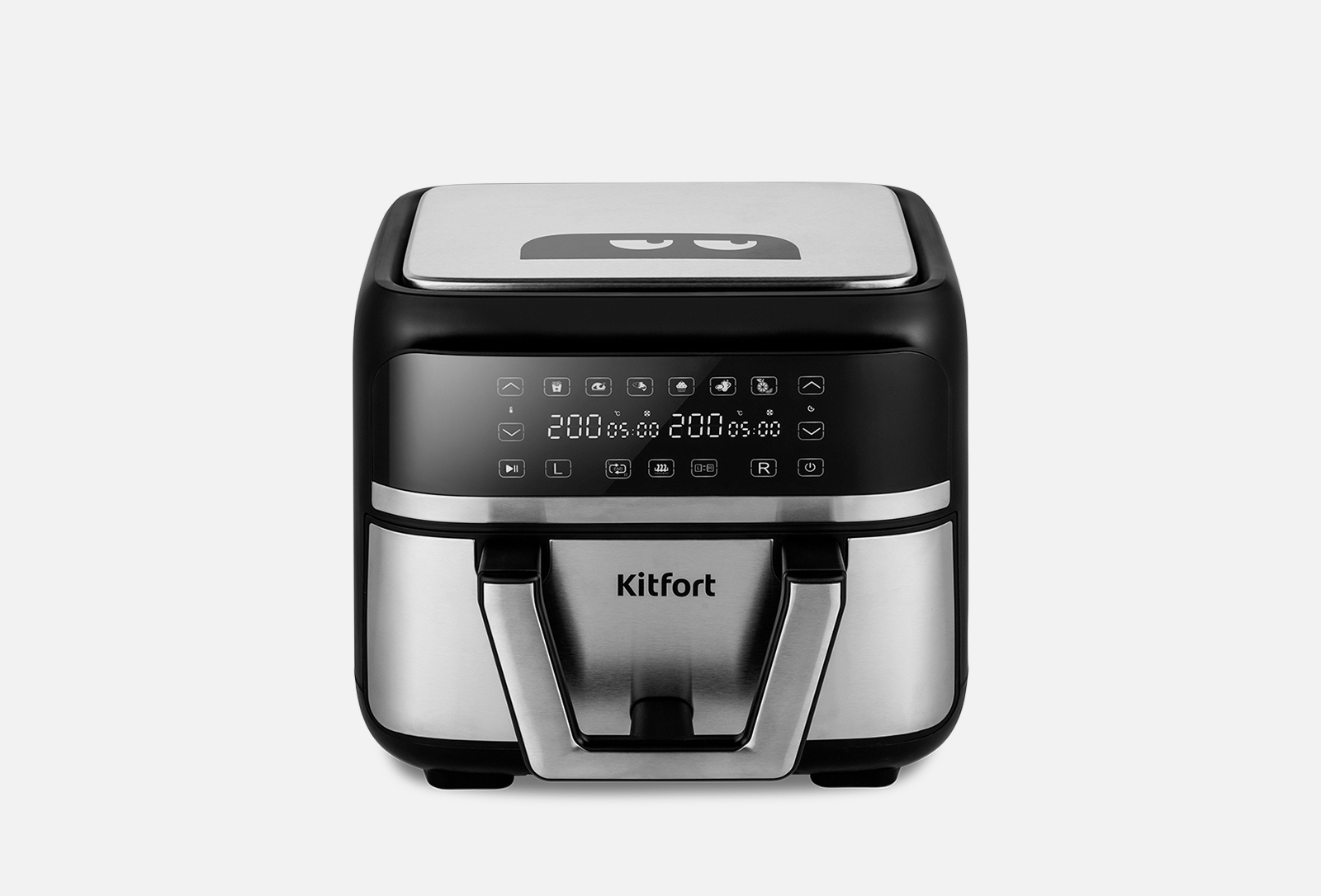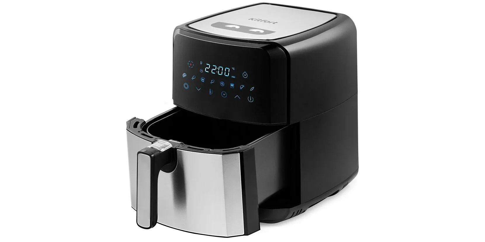 Бюджетная модель с объёмом 6,5 л и мощностью 1350 Вт. Этот «дедушка» аэрогрилей Kitfort старше многих: работает тихо, есть 9 программ и ручной режим.