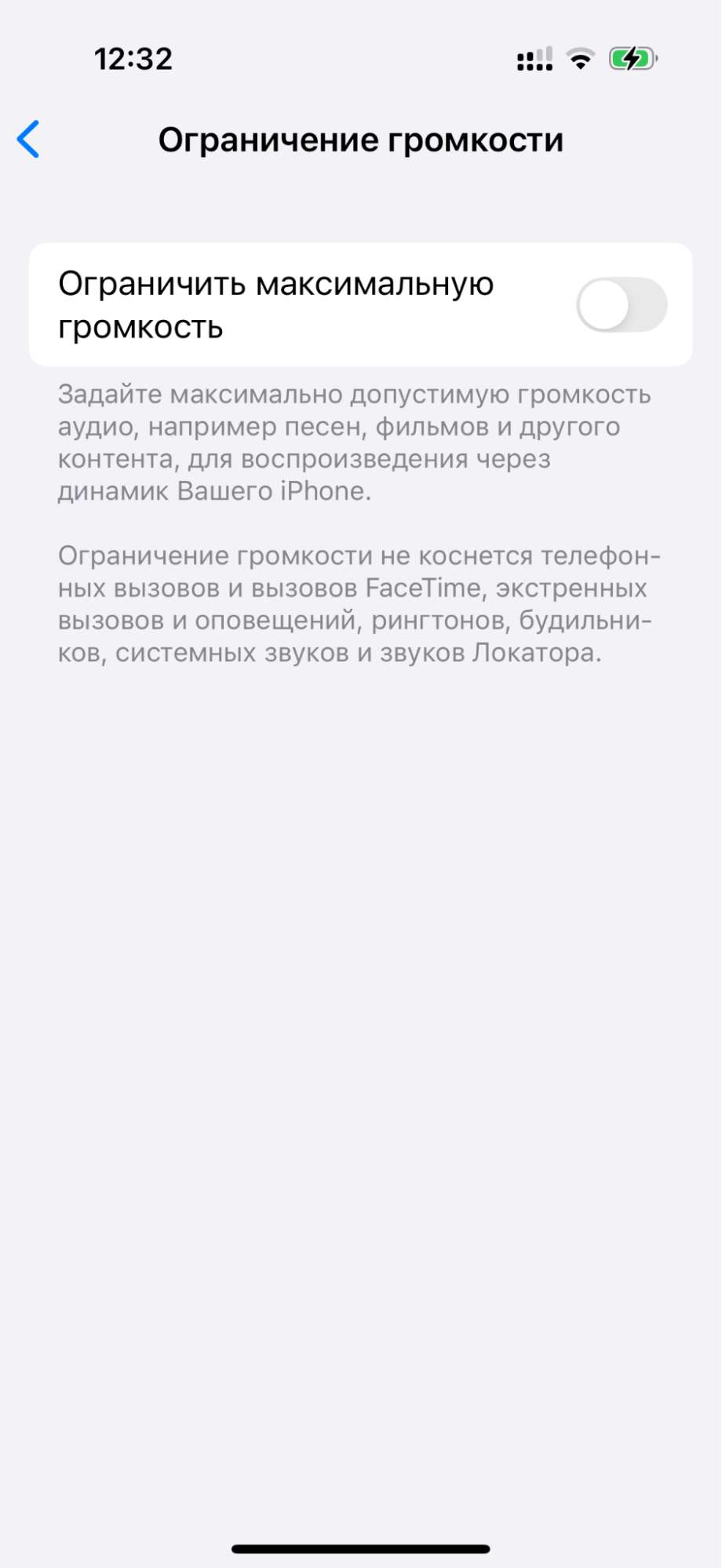 На iPhone в разделе «Настройки > Звуки» есть опция «Безопасность наушников» — если она включена, система может автоматически снижать громкость при долгом прослушивании.