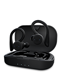 Ещё одни спортивные наушники с универсальным креплением-крючком. В наушниках усиленные басы, что отлично подходит для занятий спортом. Помимо 8 часов работы от аккумулятора, разработчики обещают ещё 24 часа работы от зарядного кейса.