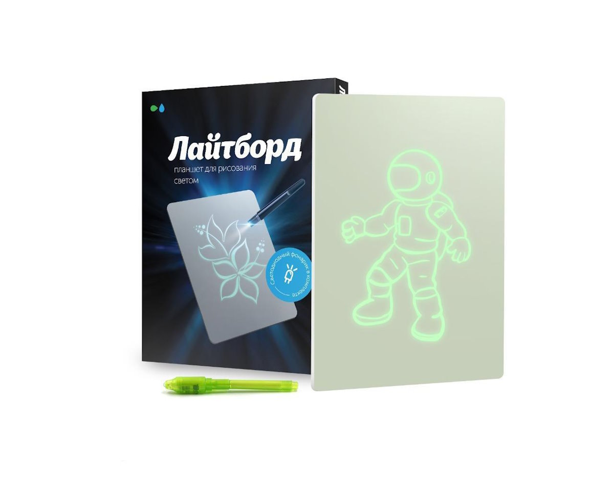 А что же прикольного подарить любимому сиблингу-юнцу? Если до этого ваш младший брат ни разу не рисовал светом – он сможет попробовать это сделать на планшете «Лайтборд»! Товар является абсолютно безопасным и гипоаллергенным, в составе красок не содержится фосфор. Воплотить можно любой рисунок, любую творческую идею. Картина долго еще будет освещать пространство квартиры, прежде чем постепенно потухнет.