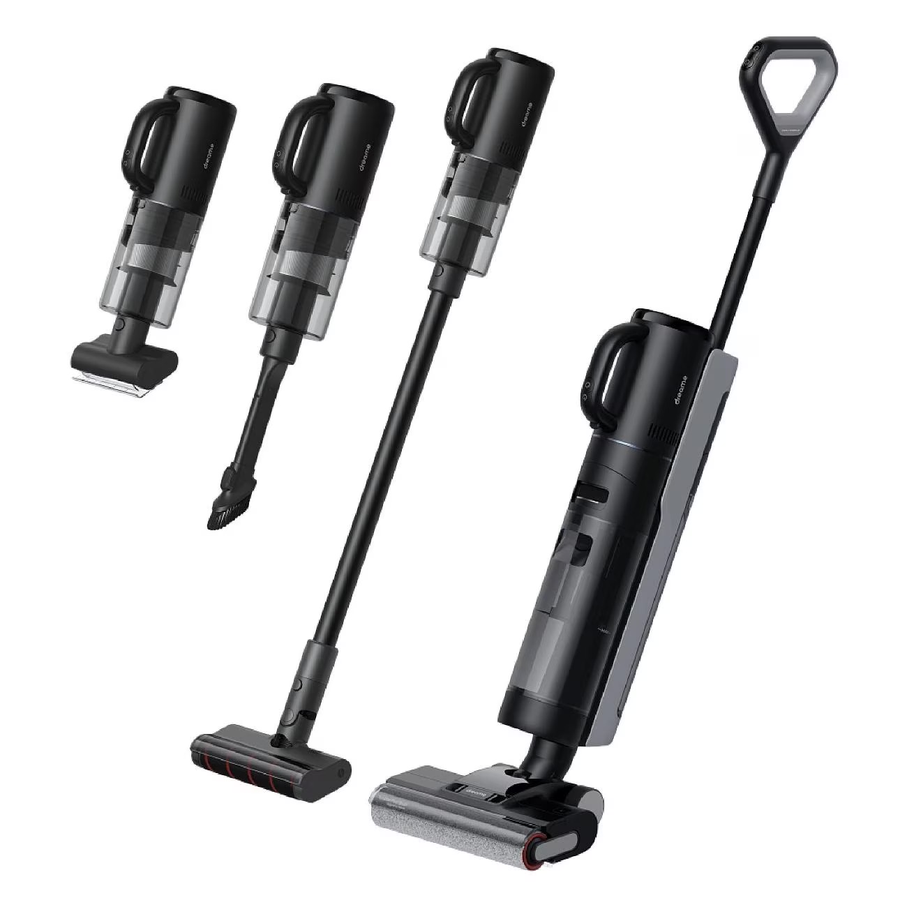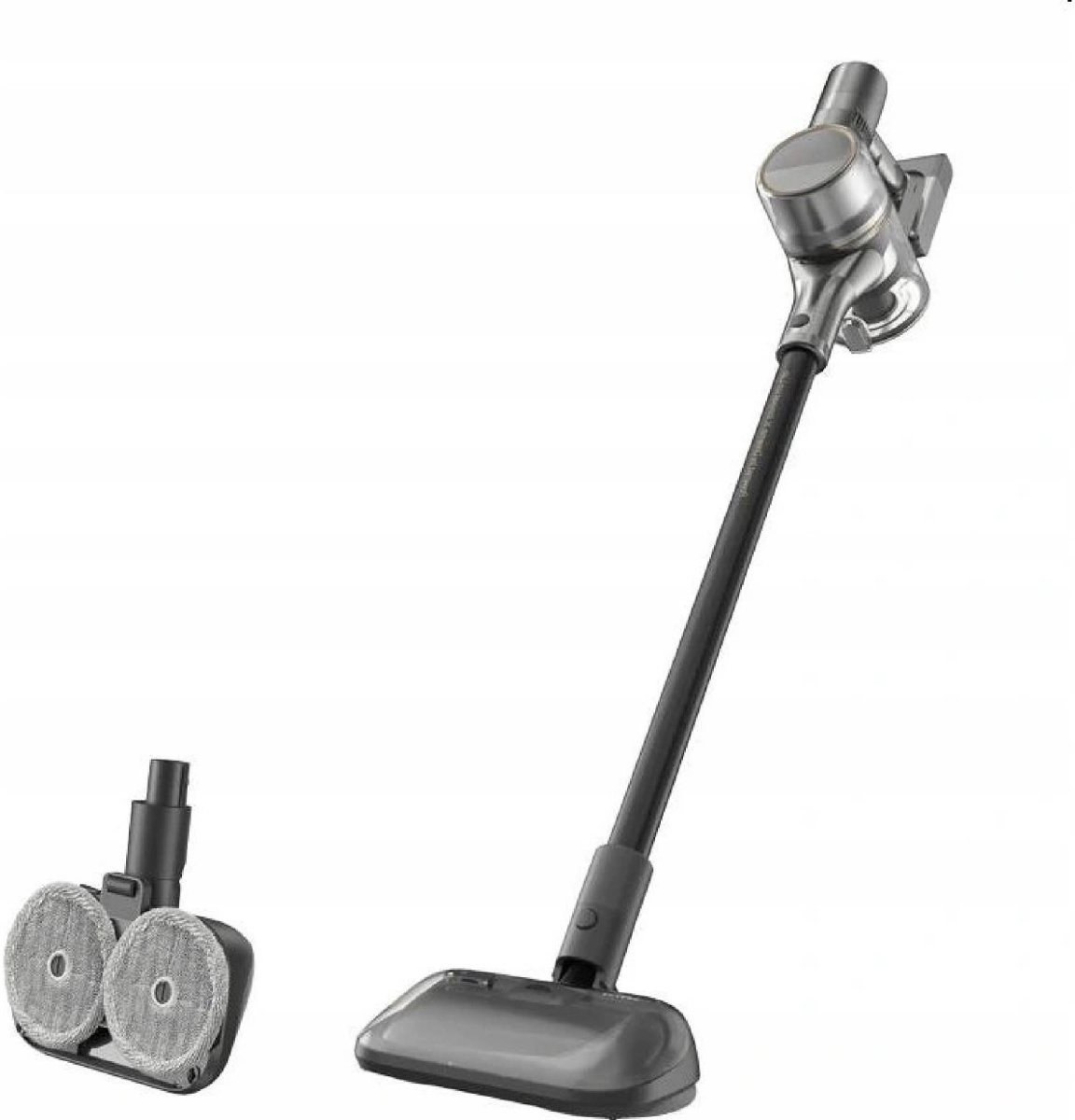 H12 Dual – самый мощный моющий вертикальный пылесос в этом списке. Это гибрид: одна насадка с валиком «моет пол» (закрытый цикл вода/грязь), и при необходимости к основному блоку можно подключить обычные щётки для сухой уборки (пол, ковёр, мебель). Устройство напоминает «2 в 1»: откинул блок и продолжай сухую уборку.