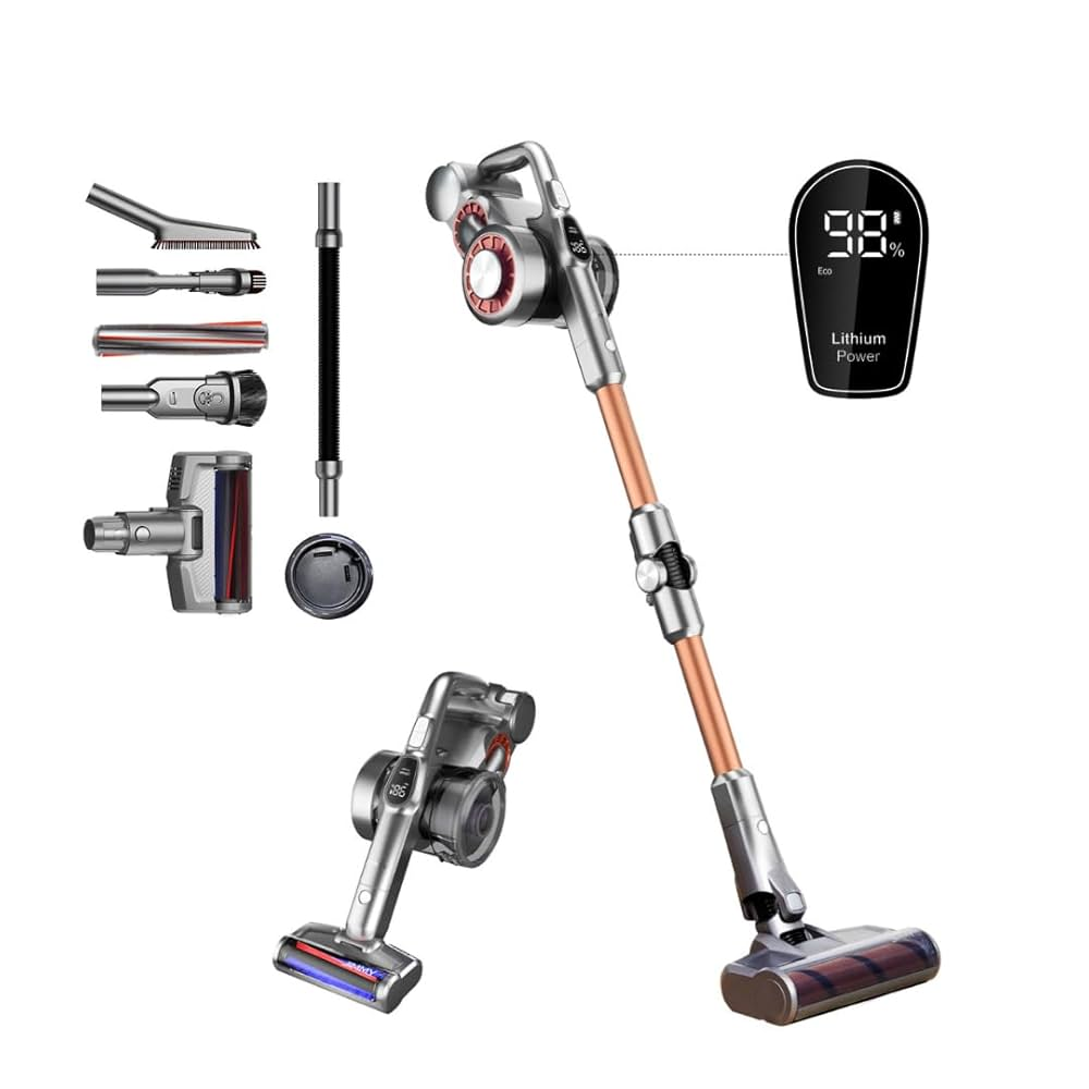 Компактный беспроводной пылесос с HEPA-фильтрацией, гибкой трубой — идеально для аллергиков.