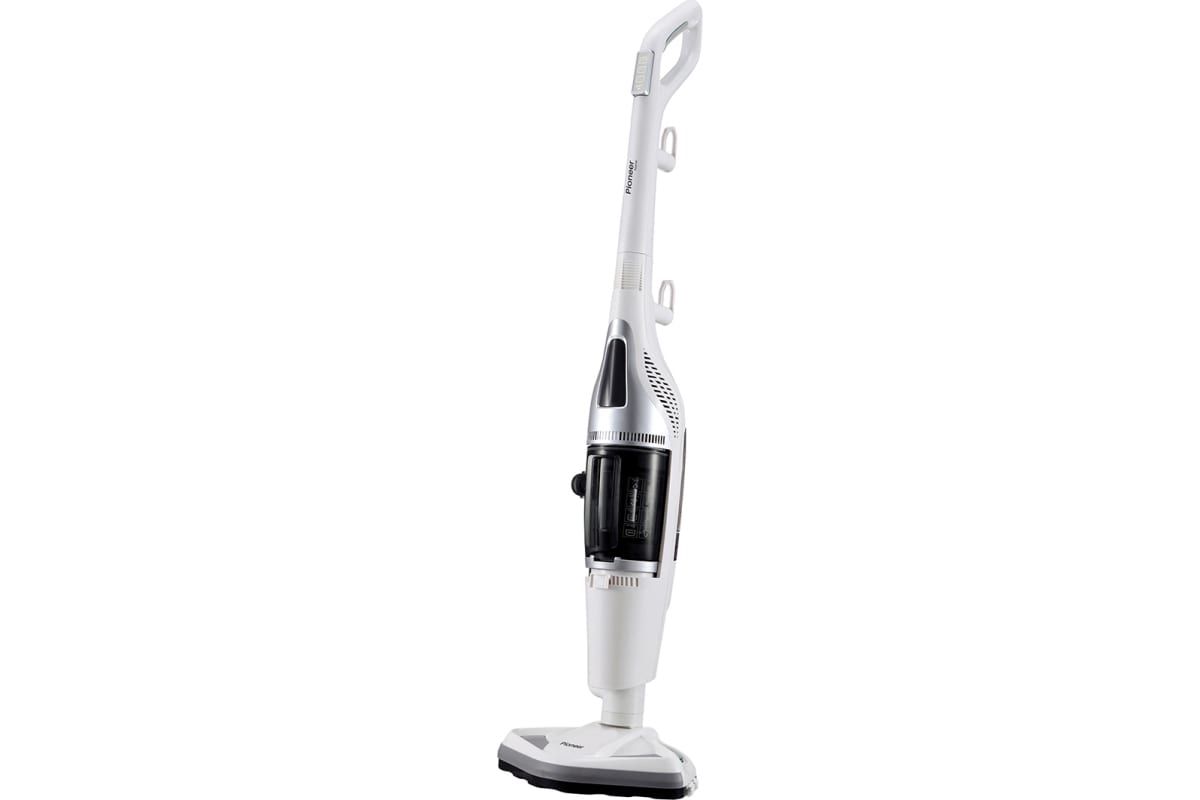Pioneer VC465S – многофункциональное устройство, сочетающее вертикальный пылесос и паровую швабру в одном корпусе. Эта модель может работать как в режиме пароочистки пола, так и как обычный вакуумный пылесос – или выполнять оба действия одновременно. Мощность нагрева у швабры 1300 Вт (давление пара до ~3 бар), а мощность всасывания пылесоса – 550 Вт, с циклонным контейнером объемом 1,2 л для мусора. Парогенератор оснащен резервуаром 420 мл, которого хватает примерно на 20–25 минут пара. В комплект входят 3 насадки: для пола (с креплением салфетки), щелевая насадка и маленькая щетка для ручного режима. Длина шнура увеличена до 6 м – этого достаточно для комфортной уборки комнаты. Pioneer VC465S особенно удобен для быстрого наведения порядка: за один проход он собирает пыль и одновременно отмывает поверхность паром.