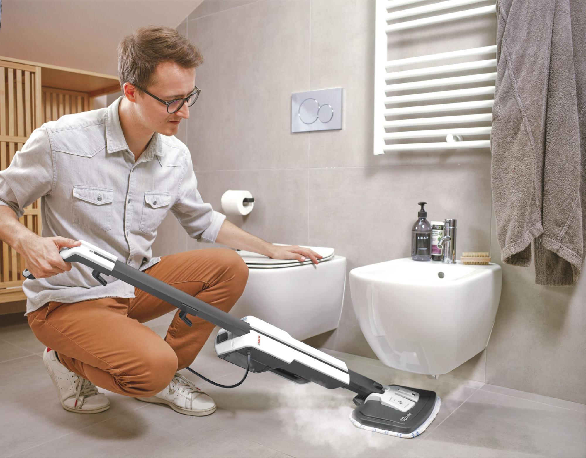 Идеальный вариант — два устройства. Сначала пылесос для сухой уборки, особенно ковров и углов, затем паровая швабра для мытья и дезинфекции твёрдых поверхностей.