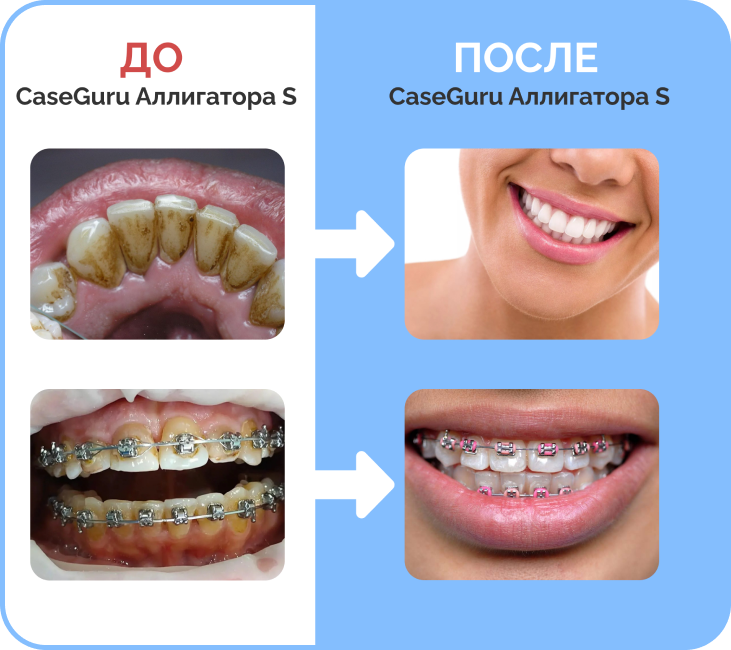 Аллигатор S уничтожает зубной налёт и бережно массирует дёсны, улучшая кровоток, — предотвращает развитие кариеса, инфекций и выпадение зубов.