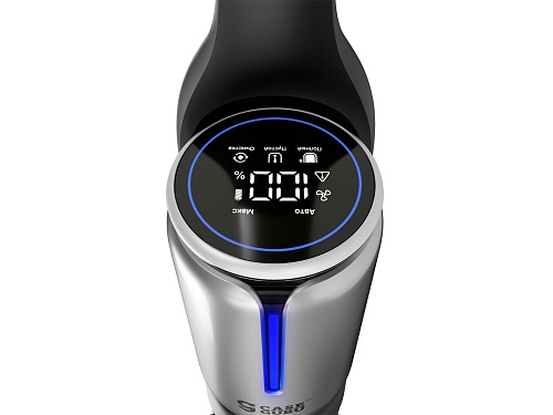 LED-дисплей отображает: режим уборки, заполненность резервуаров и процент заряда в цифрах.
