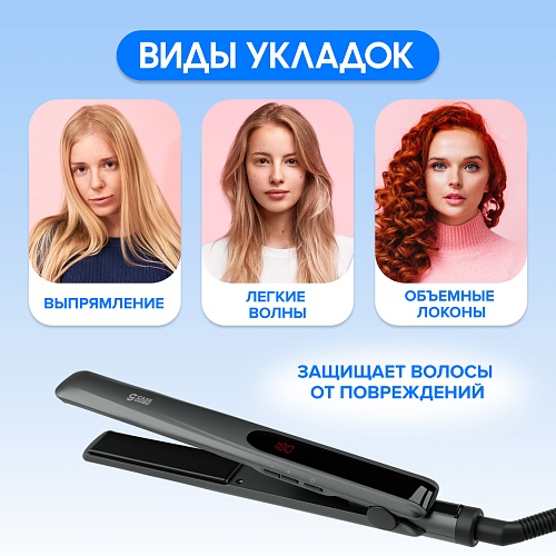 Для разных образов Сочетает в себе выпрямитель и плойку: можно создавать идеально прямые волосы, прикорневой объём, завитки и крупные волны.