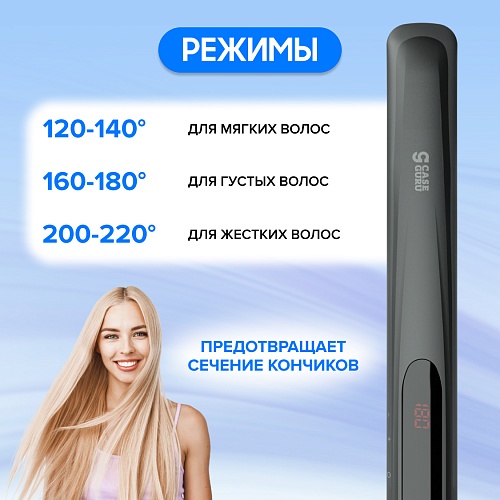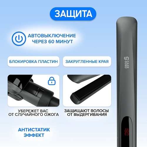 Двойная термозащита Безопасное биокерамическое покрытие пластин (такое же используется в хирургии и стоматологии). И встроенная защита от перегрева — пластины не нагреваются свыше 220°.