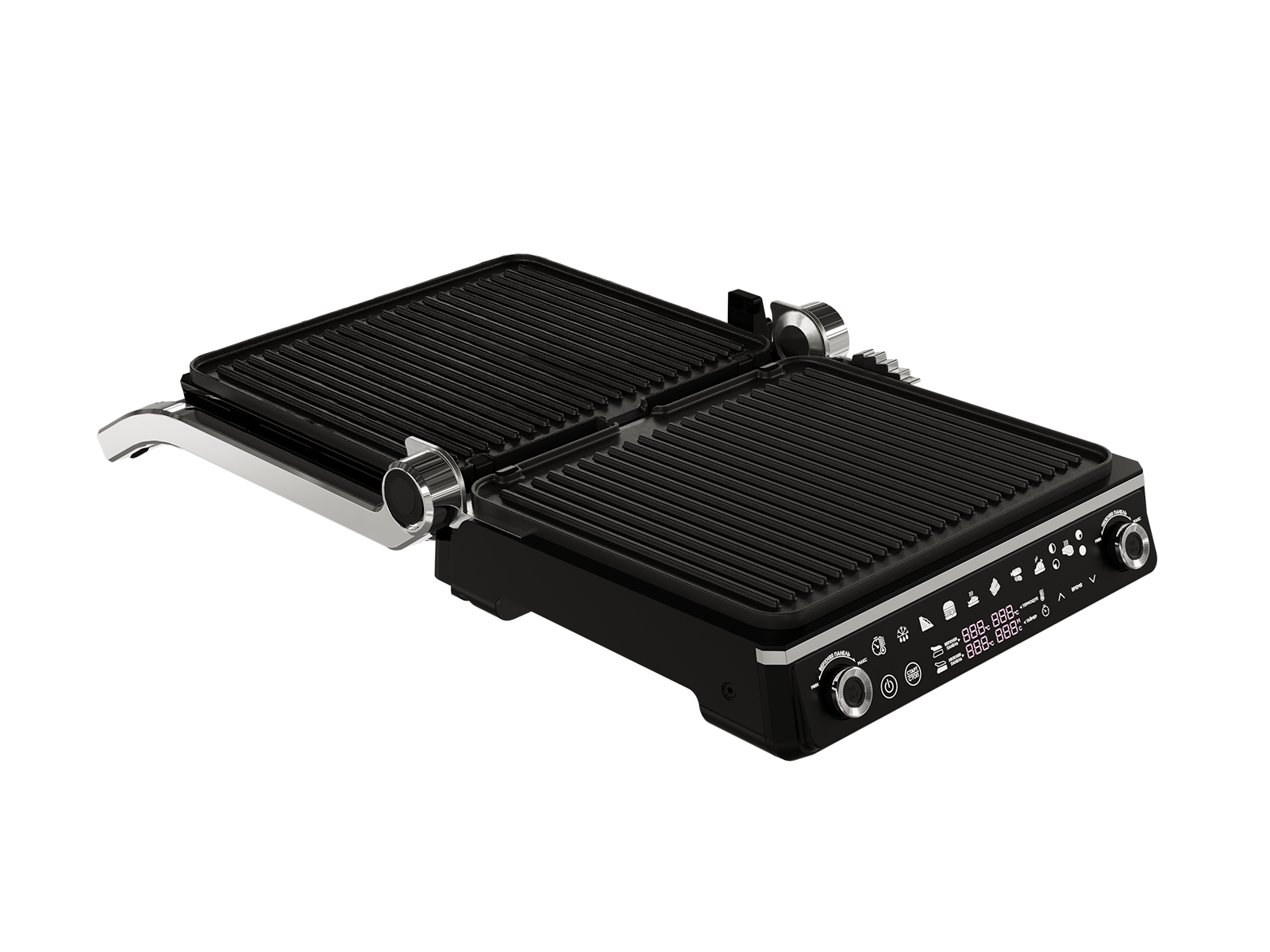 Эффект мангала в домашних условиях Панели электрогриля раскрываются на 180°. Огромная рабочая поверхность: 2 панели 29х24,5 см — можно приготовить еду на несколько дней или для большой компании. При этом сам электрогриль в сложенном виде занимает мало места.
