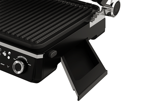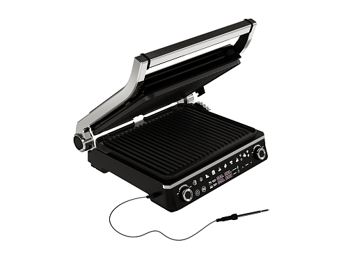 В комплекте с электрогрилем есть термощуп — можно с точностью отследить температуру продуктов для понимания готовности блюда и не пересушить его.