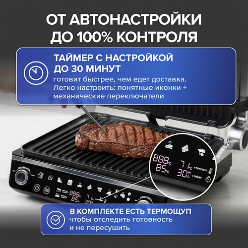 Функция автопилота Таймер с настройкой до 30 минут — можно установить программу приготовления, чтобы электрогриль автоматически приготовил нужное блюдо.