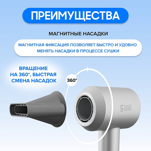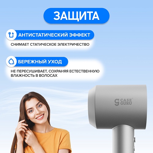 и повреждённые волосы Частое мытьё головы, окрашивание и химическая завивка поднимают чешуйки волос. CaseGuru Мультифен с холодным обдувом бережёт волосы и препятствует их преждевременному старению.