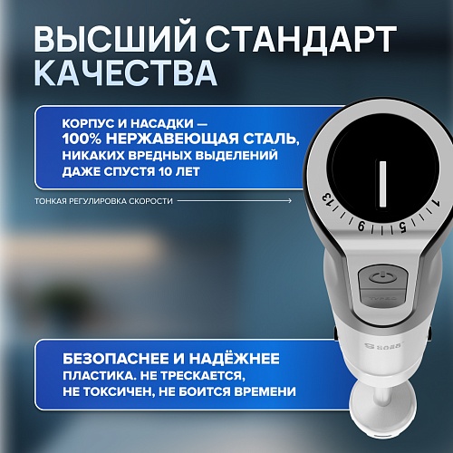 На верхней скорости двигатель совершает более 15 000 оборотов в минуту. Мощнее двигателя спортивного авто. Супы-пюре, соусы и смузи БЕЗ комочков!