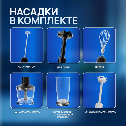 Погружной блендер 5 в 1: измельчитель, блендер, миксер, капучинатор, насадка для пюре
