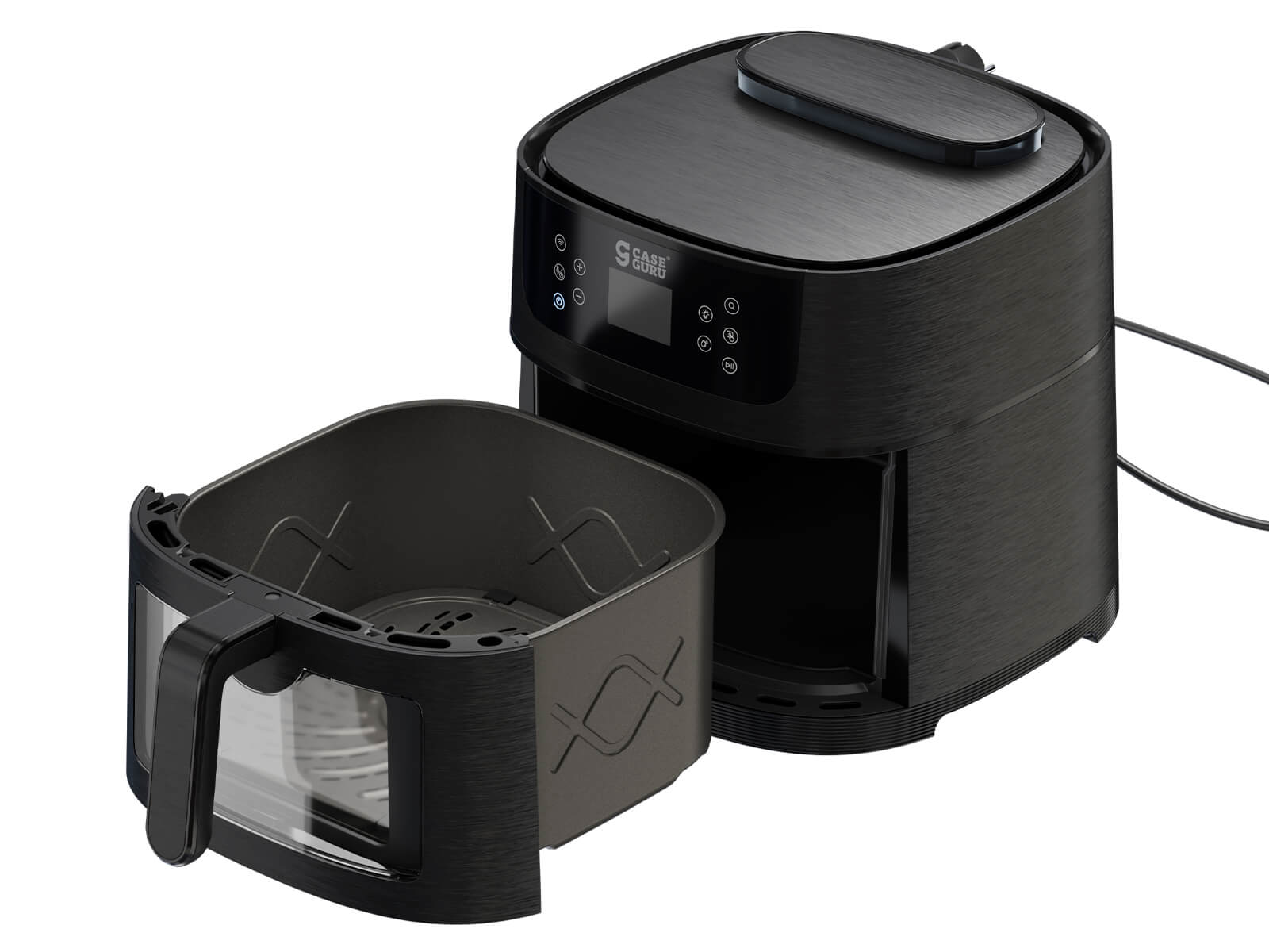 Для большой семьи Объёмная чаша 8 литров, при этом сам аэрогриль занимает мало места. Подходит для готовки сразу на большую семью: можно за один заход приготовить полноценную курицу с картофелем.
