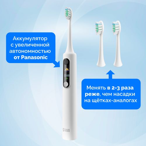 На равных с топами По ряду параметров (автономность, количество режимов, время зарядки, материал корпуса) превосходит профессиональные зубные электрощетки Oral-B и Philips, которые стоят в 4-5 раз дороже.