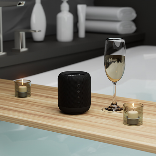 В ванной или в душе Наслаждайтесь музыкой и общайтесь по громкой связи, принимая водные процедуры. Колонка СGBox Mini создана для этого.