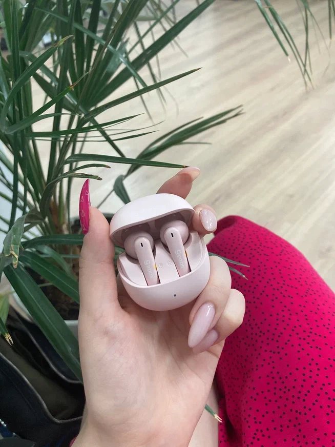 Приобрёл наушники жене на замену сломавшимся её AirPods, благодаря разъёму TypeC наушники заряжаются очень быстро(в AirPods их собственный разьём Lightning, зарядка была очень медленная и каждый раз уезжая из города нужно было брать с собой провод, TypeC же всегда с собой) очень красивый и нежный розовый цвет, приятный материал корпуса.