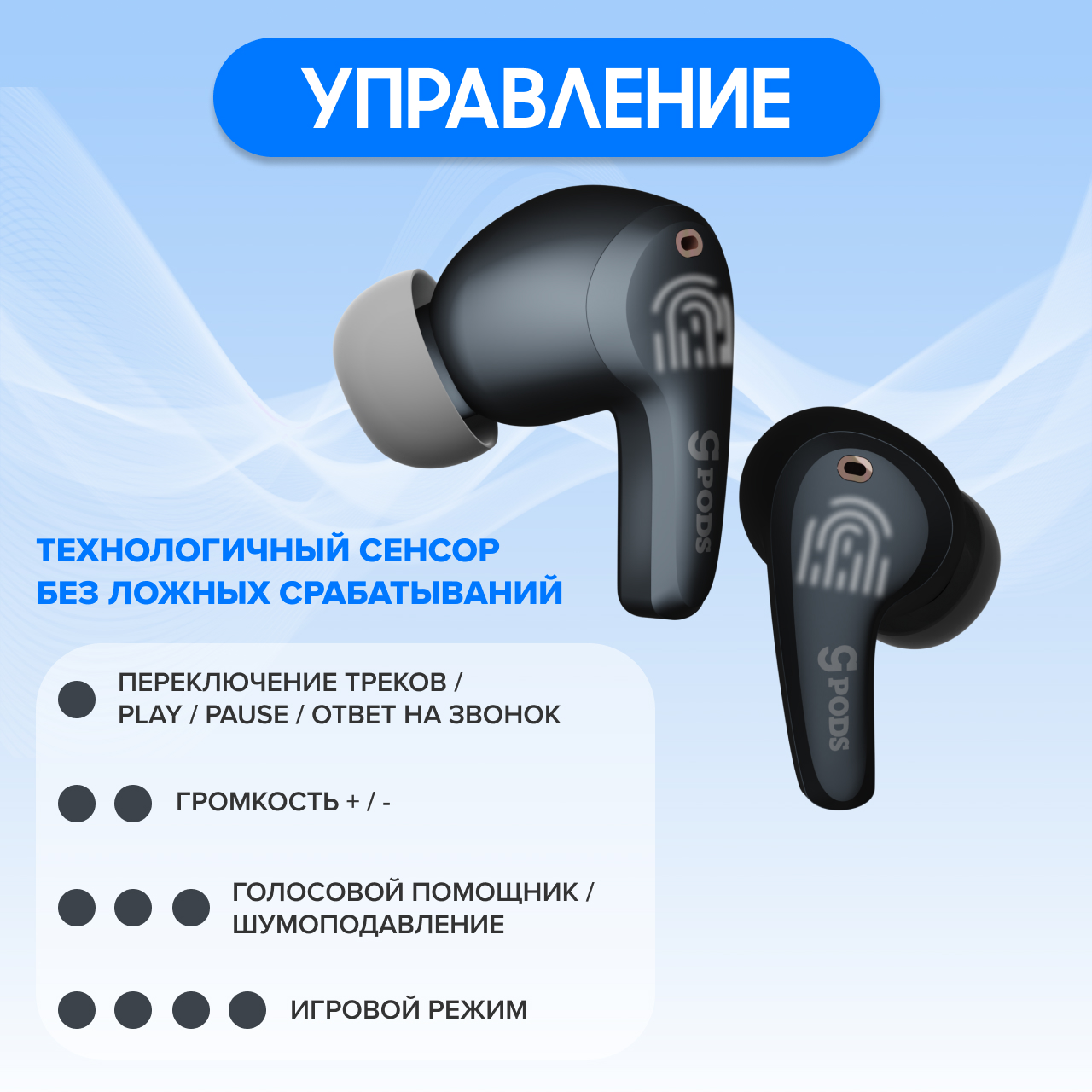 Добавьте звуку свой ритм Управляйте наушниками легко и непринуждённо: касанием принимайте звонки, переключайте громкость и музыку.