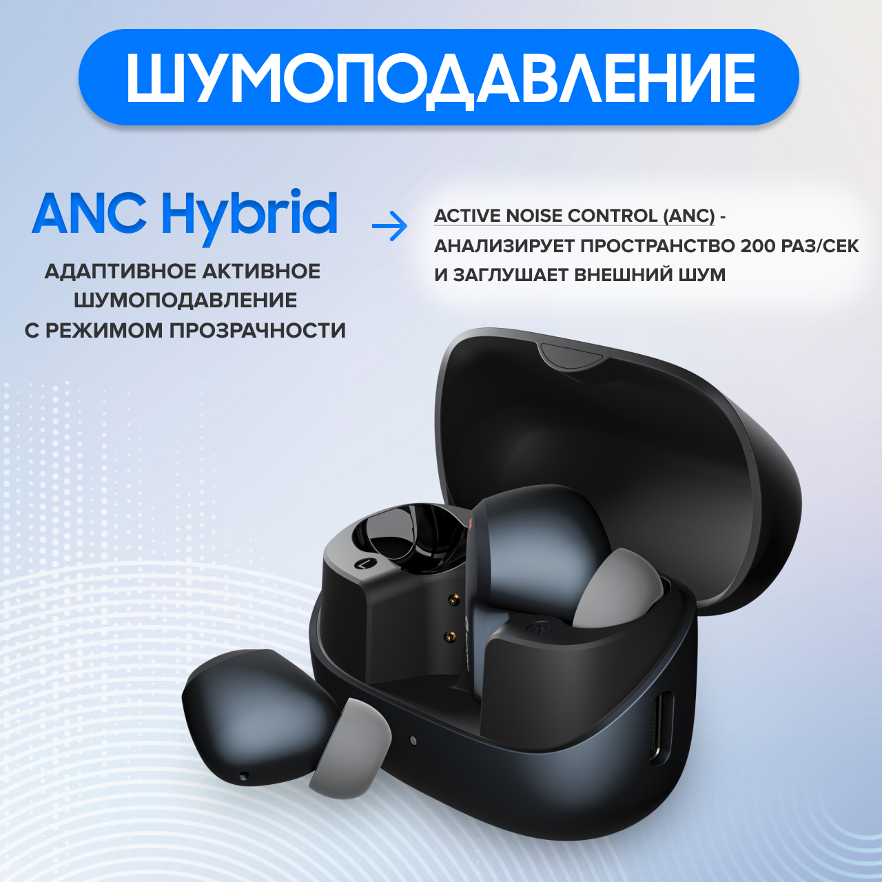 Шум, ты не пройдешь! Флагманская система шумоподавления ANC Hybrid — плотность звука как в студии записи.