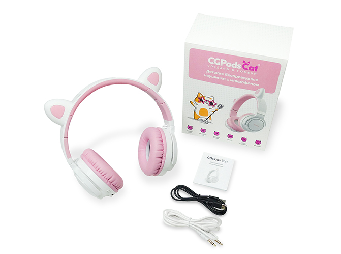 Комплектация Наушники CGPods Cat Кабель Type-C для зарядки Звуковой кабель AUX для совместного прослушивания Инструкция / гарантийный талон на русском языке