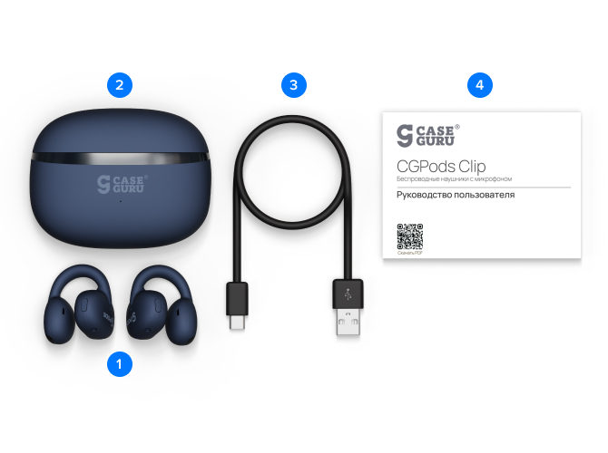 Комплектация 1. Беспроводные наушники CaseGuru CGPods Clip