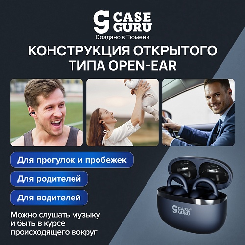 Безопаснее обычных наушников Конструкция открытого типа оpen-ear. Для прогулок и пробежек: не пропустите сигнал авто или крик самокатчика. Для родителей: не пропустите звонок в дверь, плач ребёнка или таймер стиральной машины. Для водителей: можно слушать музыку и быть в курсе происходящего вокруг.