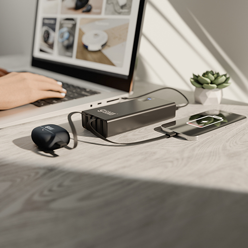 4 встроенных кабеля Type-C, Micro-USB, Lightning, USB-A — теперь работать и путешествовать стало ещё комфортнее.
