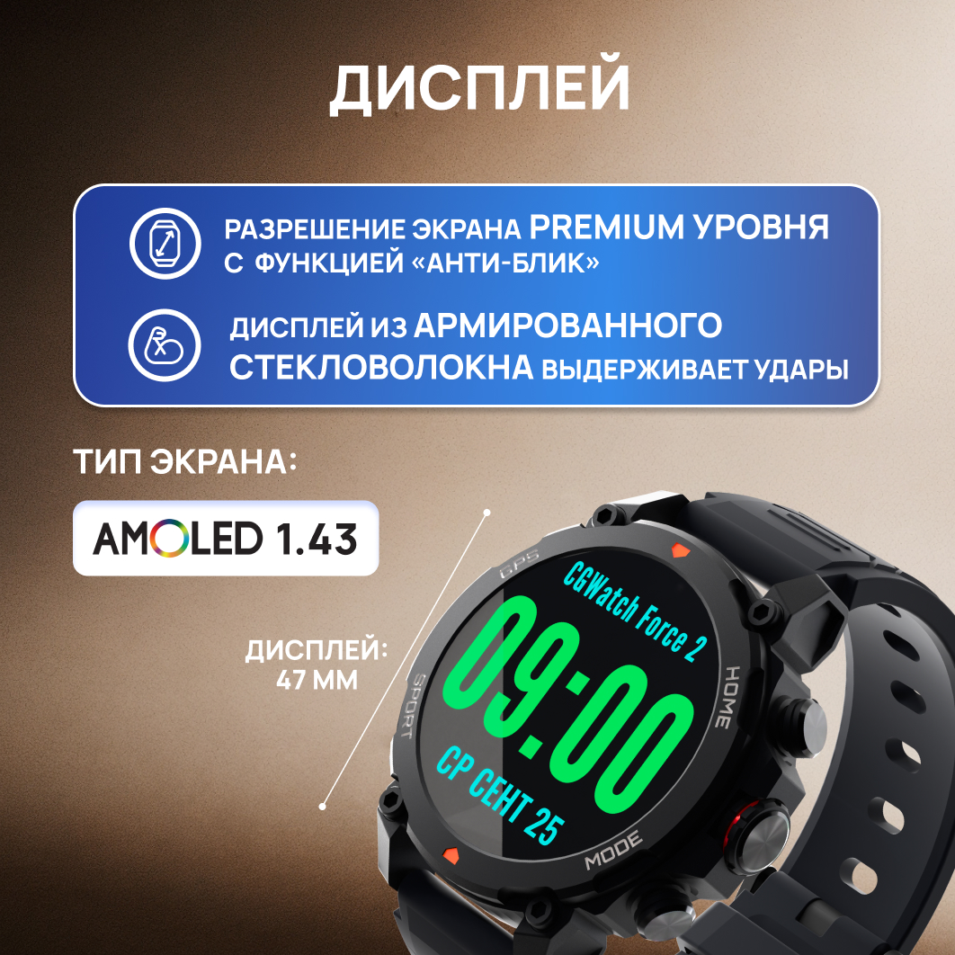 Больше, чем дисплей Огромный AMOLED-дисплей 1.43” с HD-разрешением. Все элементы отлично видны на экране, не нужно вглядываться, как в крошечные экраны смарт-часов других производителей.