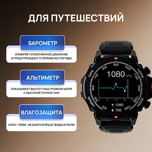 Погода под контролем Встроенный барометр — для точнейшего мониторинга погодных условий. Позволяет предвидеть резкие скачки давления. Лучшие смарт-часы для метеочувствительных людей!